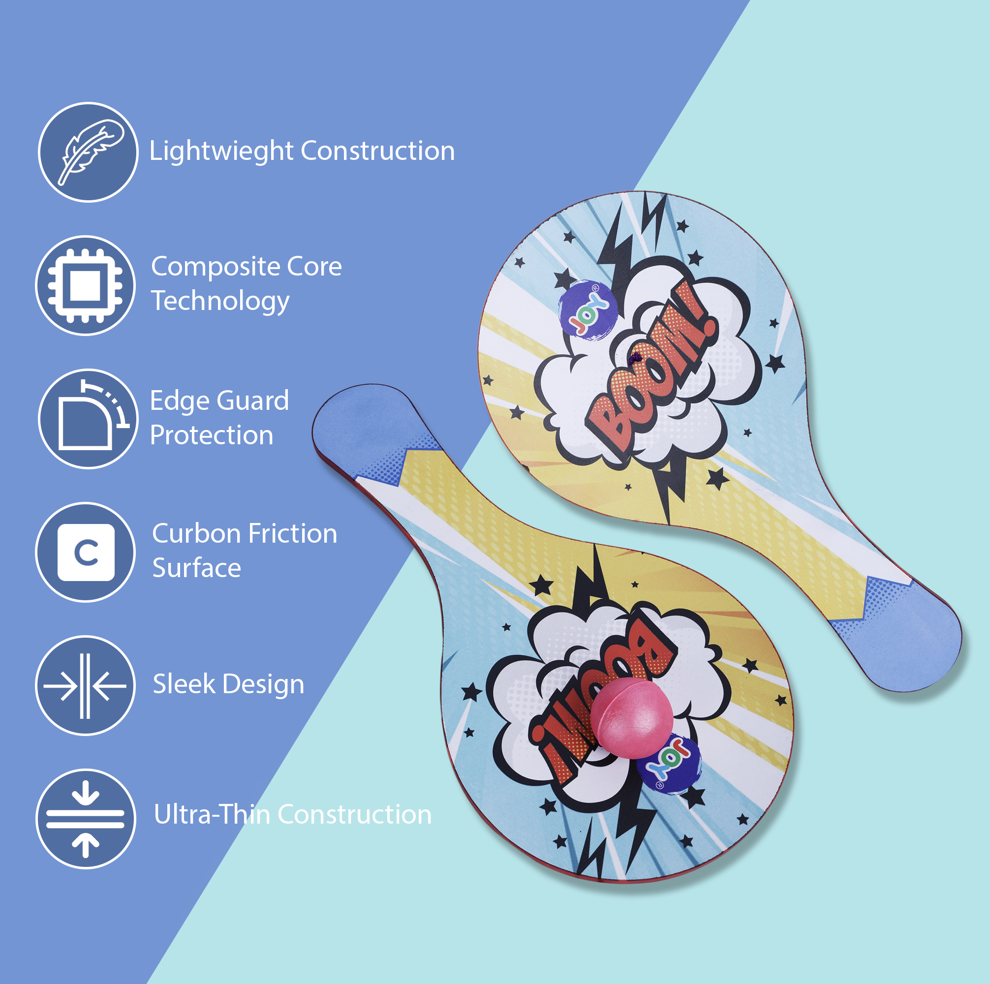 Introducing the Joy Basix Wooden Paddle & Rubber Ball set, the perfect companion for outdoor fun and playful gatherings! Crafted with premium-quality wood, the paddle provides a sturdy yet lightweight feel, allowing for effortless swings and maximum control. The rubber ball is designed for durability and a satisfying bounce, ensuring hours of entertainment whether at the beach, park, or backyard. Engage in friendly matches or enjoy solo practice sessions to hone your skills. This set promises a delightful experience for players of all ages, making it an excellent addition to your recreational gear.