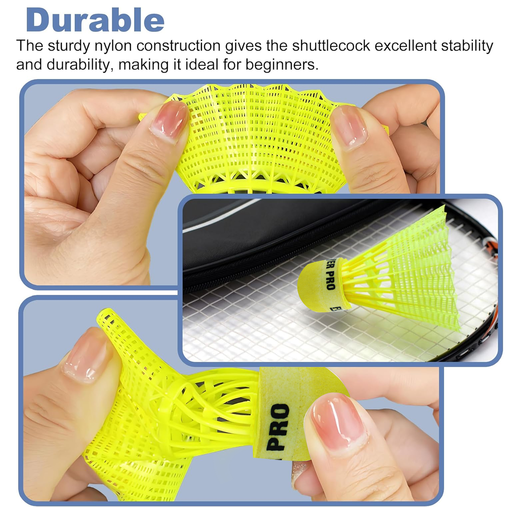 Megaplay plastic Badminton Shutlecock perfect for players as people/ kids whoplay badminton. This a traditional and professional shuttle cock set. It hasStrong EVA based Cork for providing the right strength for a perfect game. ThisShuttlecock set is perfect for Sports, Games, Kids, Birthday return gifts etc.