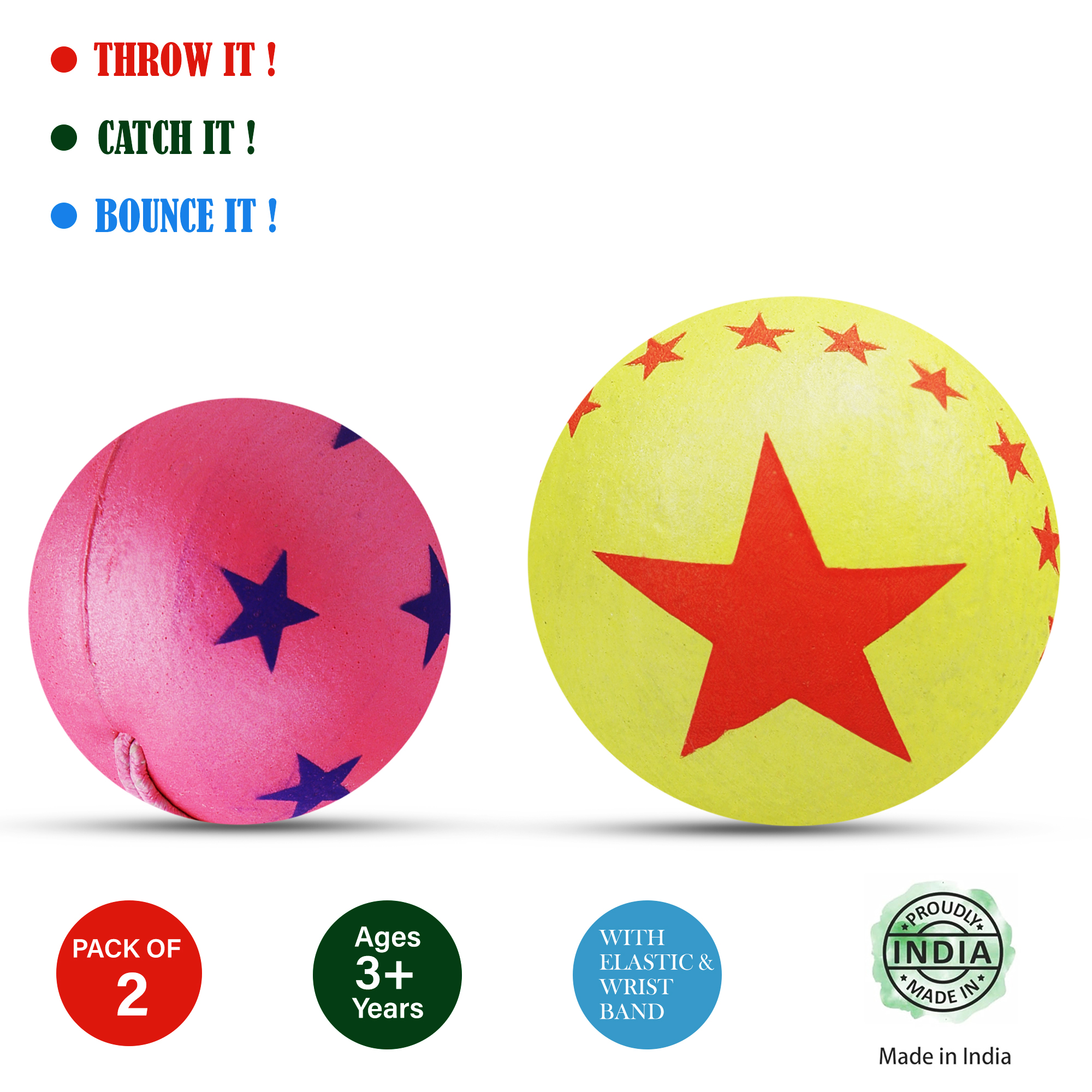 Variation to classic YoYo, Return Rubber Ball. Attach Wrist band to your wrist and play the game. Improve coordination, balance, speed, and reflexes! Use it follow the picture, first, tie around the wrist, and then throw the ball to the place that is sure second, catch the ball quickly when it to up from the ground. Do it again and again how many times could you catch the ball go up from the ground in one minute. Rubber each of these balls is made from the finest quality rubber, these colorful balls are great for your daily games with friends catch and throw, backyard cricket or any other game of your fun. Happiness on the kids face and quality matters for us. Throw It ! Catch It ! Kick It ! Bounce It !