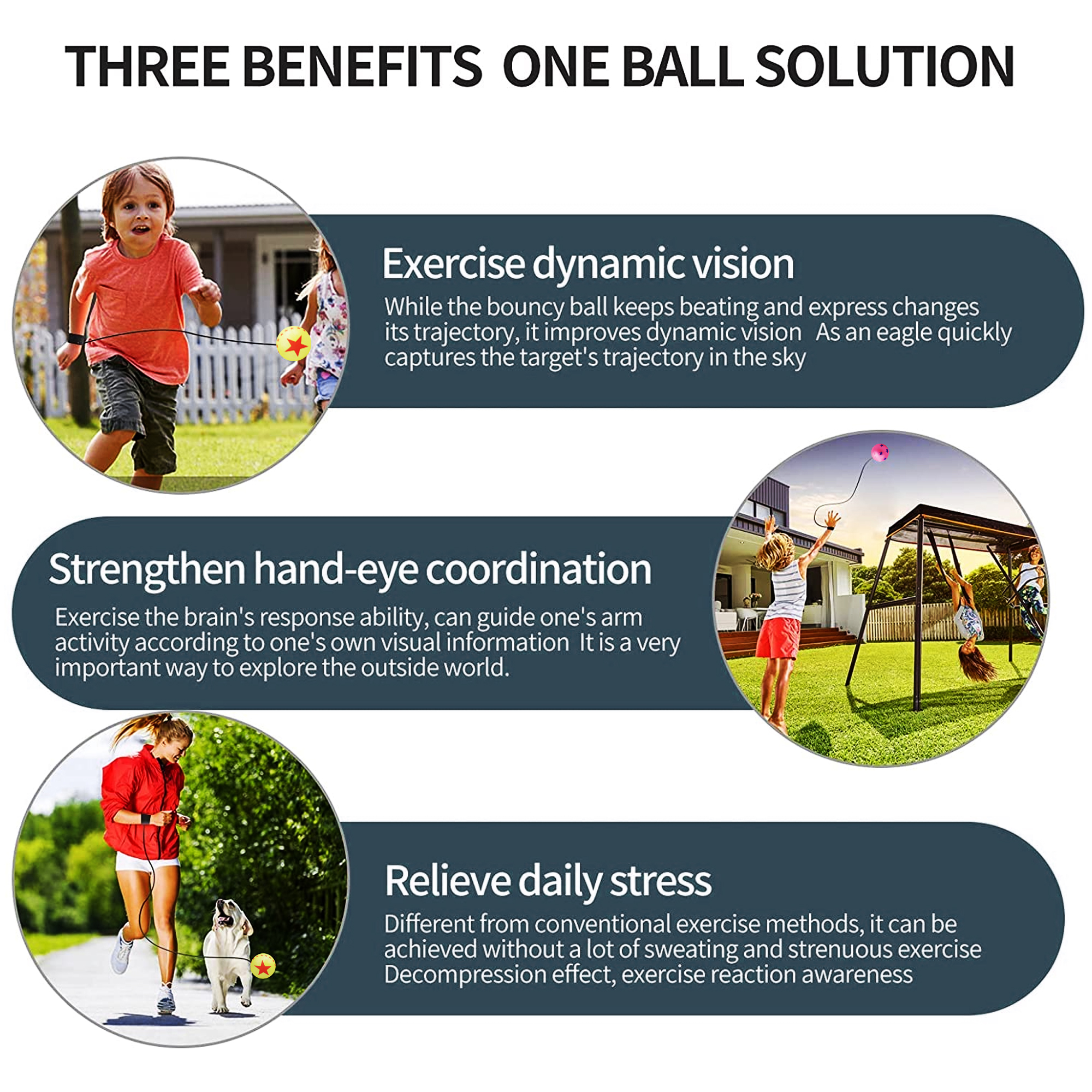 • Set of balls attached with elastic & wrist band